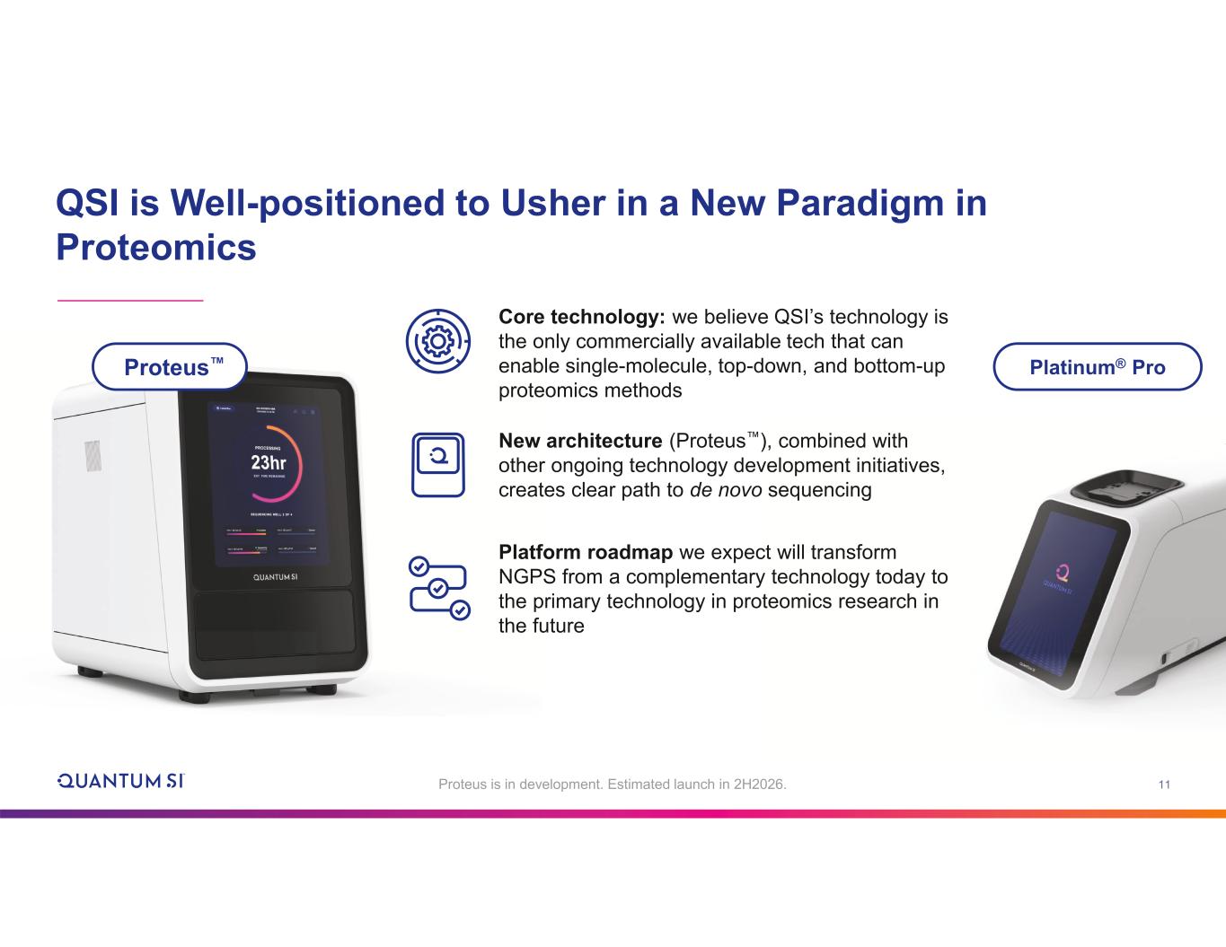 11 QSI is Well-positioned to Usher in a New Paradigm in Proteomics Proteus Platinum® Pro Core technology: we believe QSI’s technology is the only commercially available tech that can enable single-molecule, top-down, and bottom-up proteomics methods New architecture (Proteus ), combined with other ongoing technology development initiatives, creates clear path to de novo sequencing Platform roadmap we expect will transform NGPS from a complementary technology today to the primary technology in proteomics research in the future Proteus is in development. Estimated launch in 2H2026.