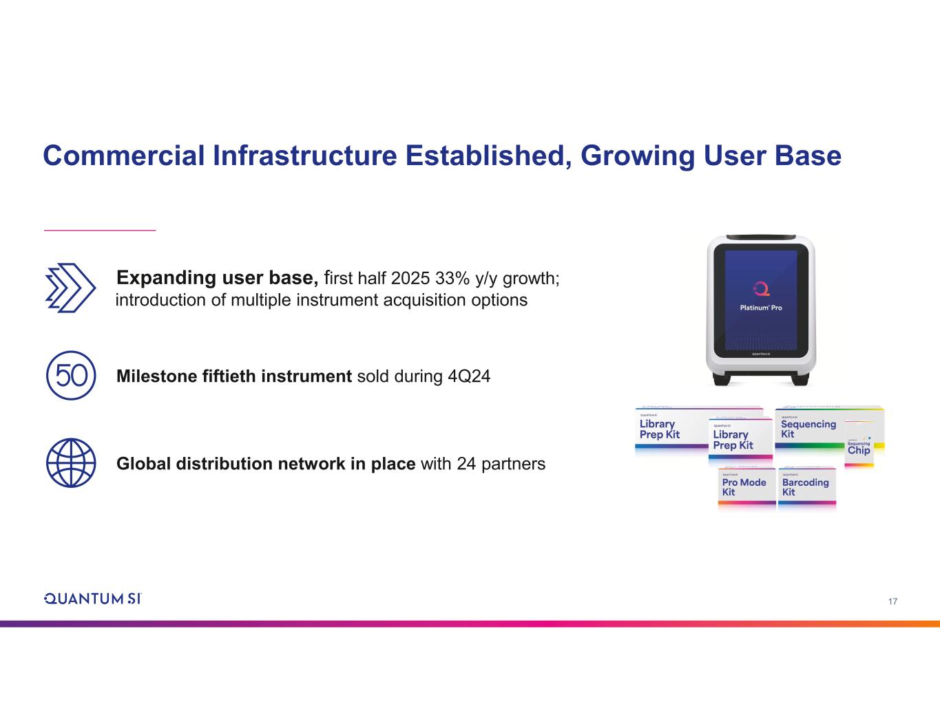 2 Disclaimer and Other Information Forward-looking Statements This presentation includes "forward-looking statements" within the meaning of the "safe harbor" provisions of the United States Private Securities Litigation Reform Act of 1995. The actual results of Quantum-Si Incorporated (the “Company”) may differ from its expectations, estimates, and projections and, consequently, you should not rely on these forward-looking statements as predictions of future events. Words such as "expect," "estimate," "project," "budget," "forecast," "anticipate," "intend," "plan," "may," "will," "could," "should," "believes," "predicts," "potential," "continue," and similar expressions (or the negative versions of such words or expressions) are intended to identify such forward-looking statements. These forward-looking statements include, without limitation, the Company's expectations with respect to future performance and development and commercialization of products and services, its anticipated cash runway and any financial guidance for the interim periods and full year 2025. These forward-looking statements involve significant risks and uncertainties that could cause the actual results to differ materially from those discussed in the forward- looking statements. Most of these factors are outside the Company's control and are difficult to predict. Factors that may cause such differences include, but are not limited to: the inability to maintain the listing of the Company's Class A common stock on The Nasdaq Stock Market; the ability of the Company to grow and manage growth profitably and retain its key employees; the Company’s ongoing leadership transitions; changes in applicable laws or regulations; the ability of the Company to raise financing in the future; the success, cost and timing of the Company's product development and commercialization activities; the commercialization and adoption of the Company’s existing products and the success of any product the Company may offer in the future; the potential attributes and benefits of the Company’s commercialized Platinum® line of protein sequencing instruments and kits and the Company’s other products once commercialized; the Company's ability to obtain and maintain regulatory approval for its products, and any related restrictions and limitations of any approved product; the Company's ability to identify, in-license or acquire additional technology; the Company's ability to maintain its existing lease, license, manufacture and supply agreements; the Company's ability to compete with other companies currently marketing or engaged in the development or commercialization of products and services that serve customers engaged in proteomic analysis, many of which have greater financial and marketing resources than the Company; the size and growth potential of the markets for the Company's products and services, and its ability to serve those markets once commercialized, either alone or in partnership with others; the Company's estimates regarding future expenses, future revenue, capital requirements and needs for additional financing; the Company's financial performance; and other risks and uncertainties described under "Risk Factors" in the Company’s most recent Annual Report on Form 10-K, and in the Company's other filings with the SEC. The Company cautions that the foregoing list of factors is not exclusive. The Company cautions readers not to place undue reliance upon any forward-looking statements, which speak only as of the date made. The Company does not undertake or accept any obligation or undertaking to release publicly any updates or revisions to any forward-looking statements to reflect any change in its expectations or any change in events, conditions, or circumstances on which any such statement is based. Non-GAAP Financial Measures This presentation includes certain non-GAAP financial measures including “adjusted total operating expenses.” Please see Exhibit 99.2 to the Company’s Current Report on Form 8-K filed with the SEC on August 5, 2025, for further discussion of the Company’s use of non-GAAP financial measures.
