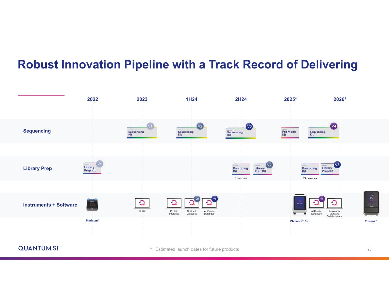 23 2025* 2H242023 2026*2022 1H24 Robust Innovation Pipeline with a Track Record of Delivering Sequencing V1 Instruments + Software UI/UX Protein Inference AI Kinetic Database V2 AI Kinetic Database V3 Library Prep V1 Platinum® Pro ProteoVue Scientific Collaborations V2 V2 V3 V4 ProteusPlatinum® * Estimated launch dates for future products 24 barcodes8 barcodes AI Kinetic Database V4 V3