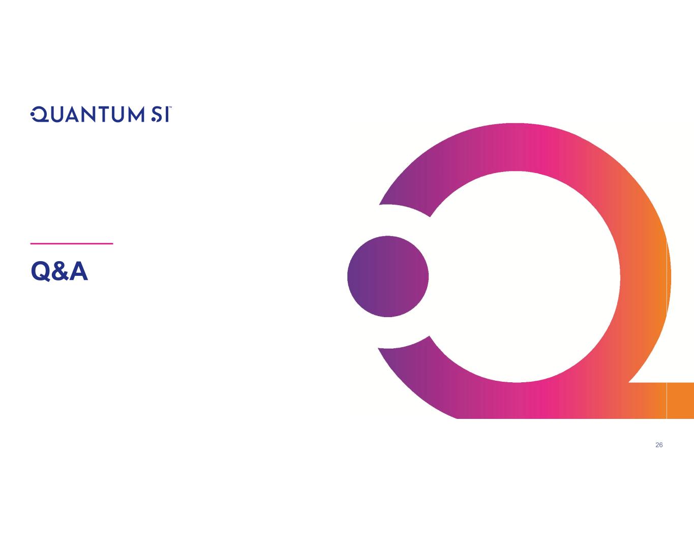 25 Quantum-Si Will Power the Proteomics Lab of the Future The analysis of proteins is a large, important and growing market which is still in its relative infancy One platform and core technology capable of addressing the broadest range of proteomics analysis methods Minimize technical tradeoffs — single-molecule, amino acids and PTMs, top-down or bottom-up, ultrasensitive, scalable throughput Affordable and automated, allowing any lab — anywhere — to be a proteomics core lab