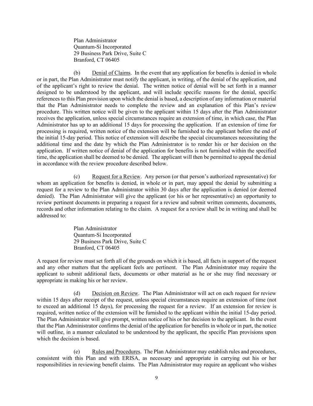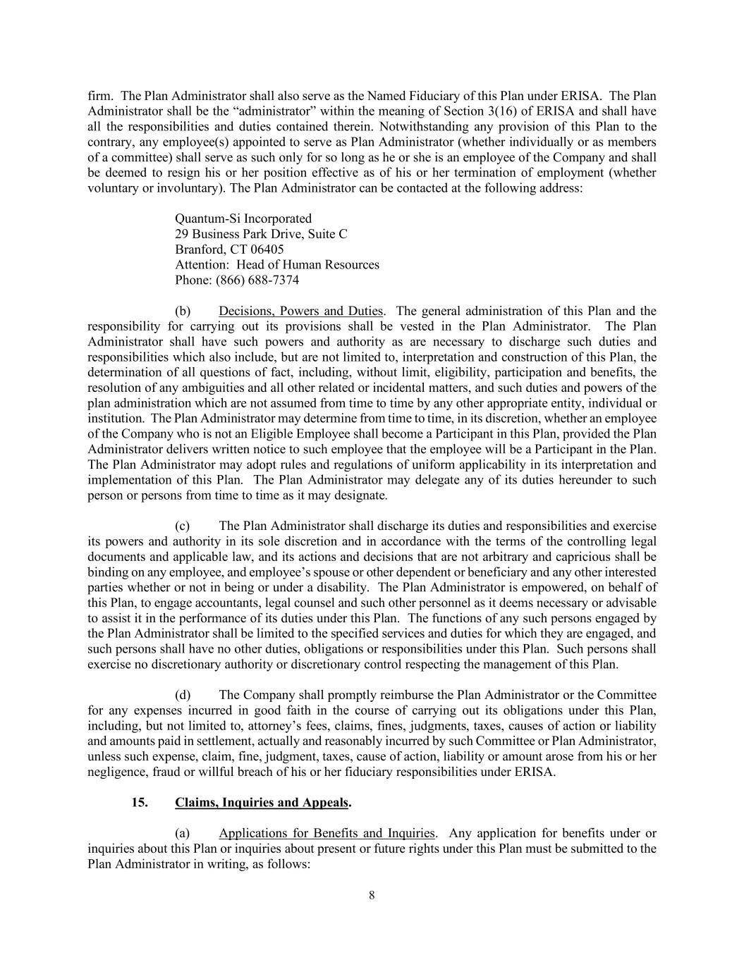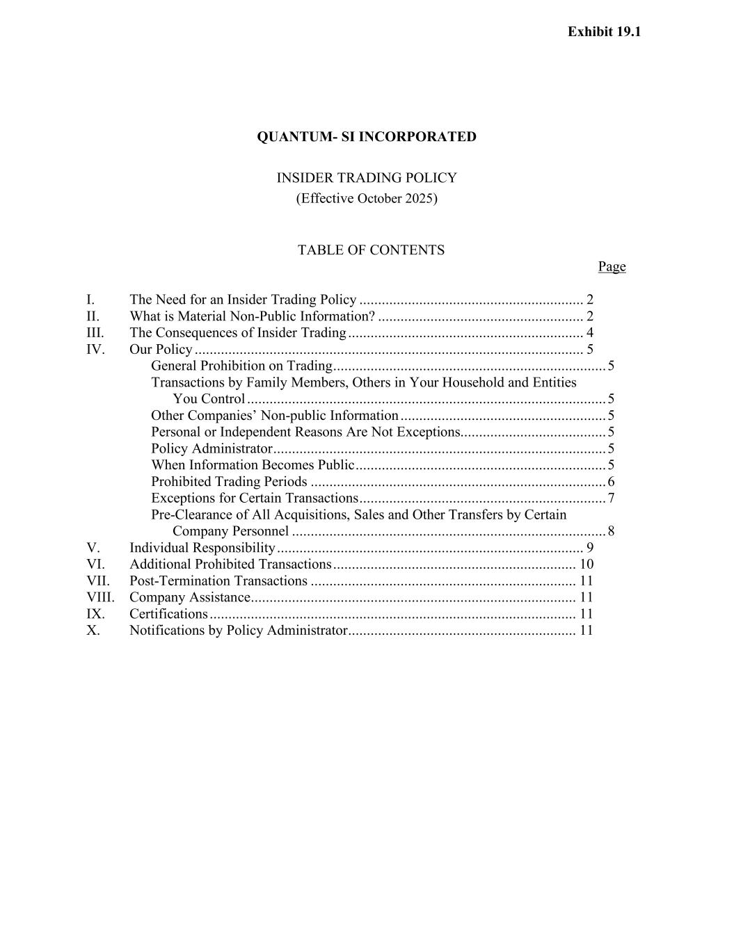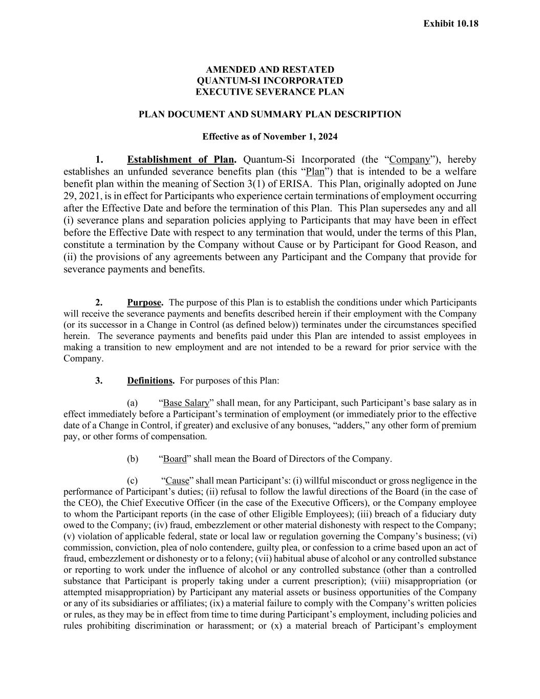 | | Separation Agreement, dated as of November 3, 2025 by and between Quantum-Si Incorporated and Mr. Todd Bennett. | | | | Form 10-Q (Exhibit 10.5+) | | 11/5/2025 |