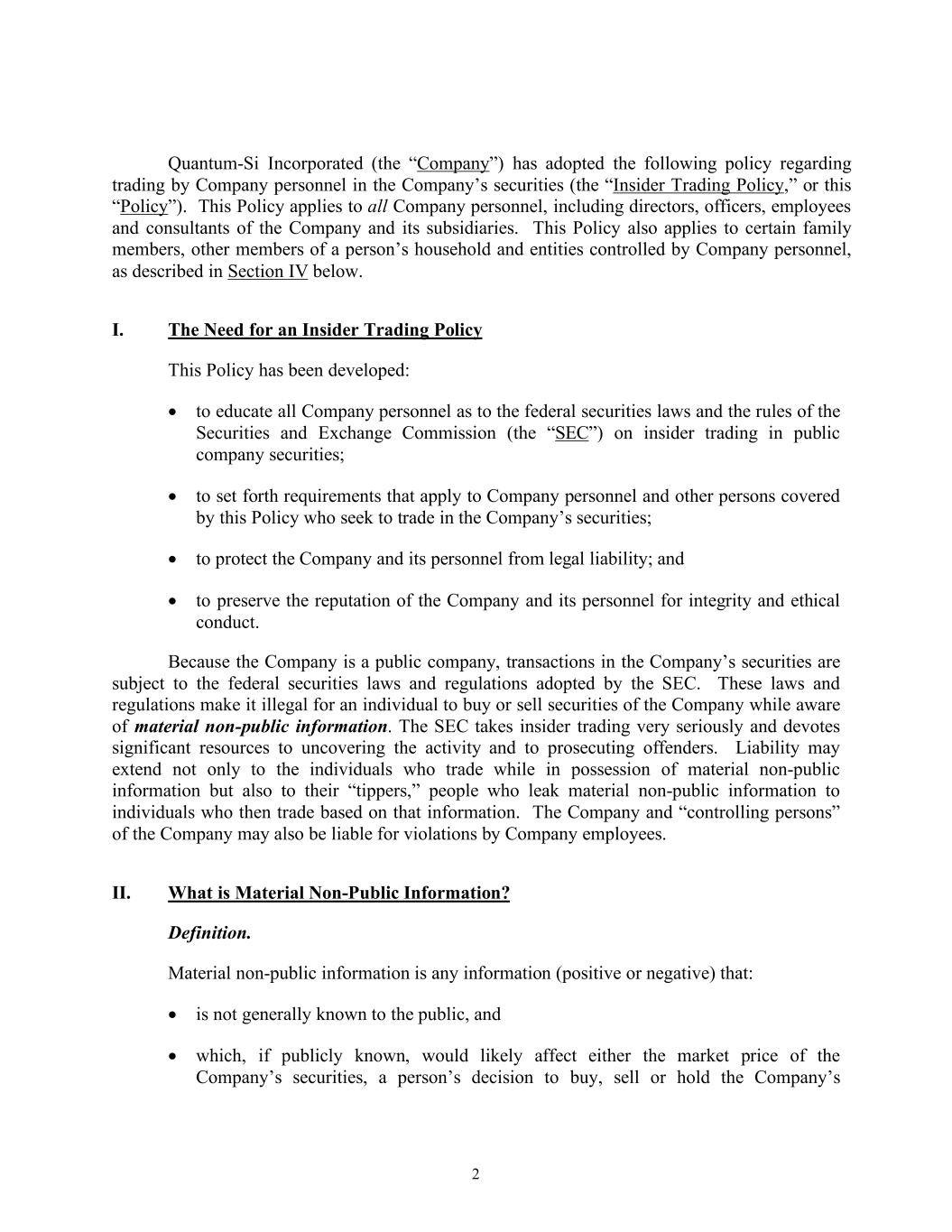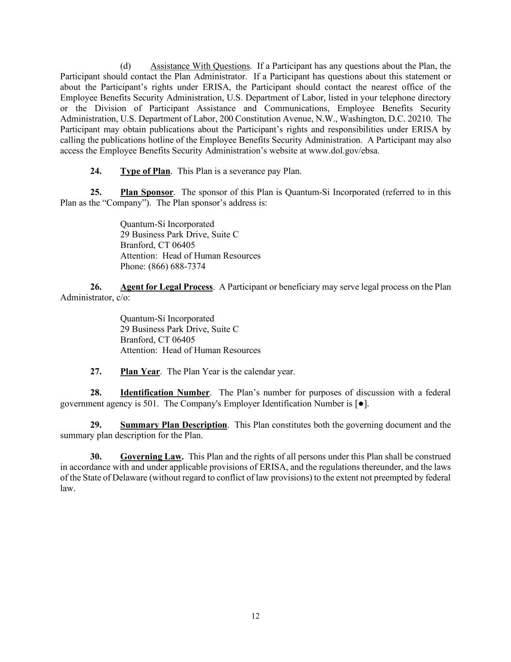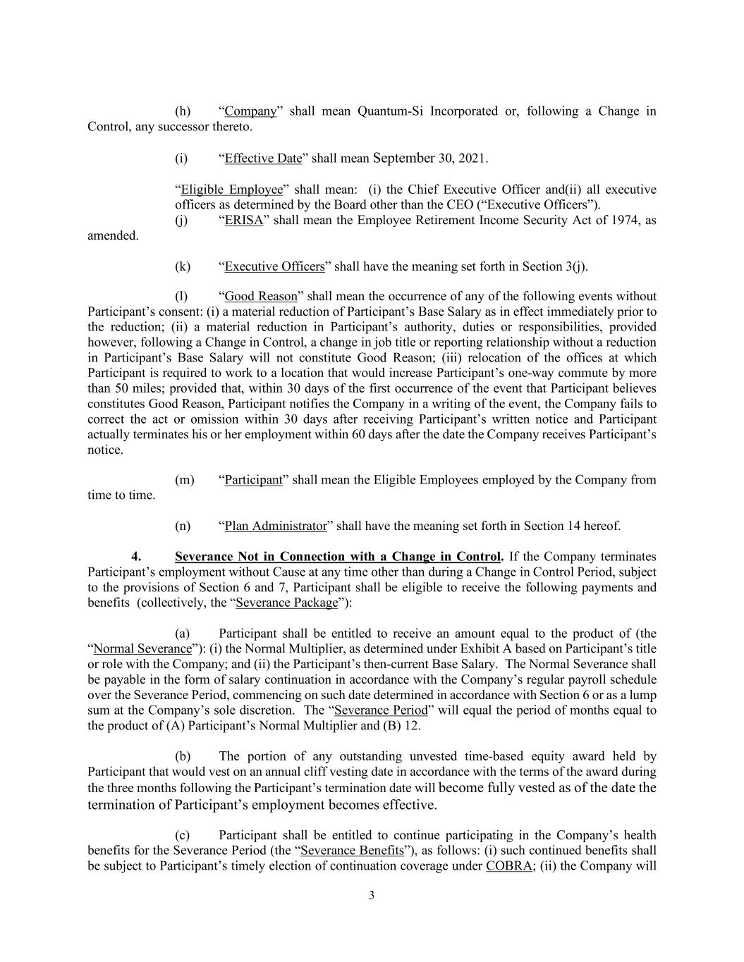 | | Quantum-Si Incorporated Executive Severance Plan, effective November 1, 2024. | | X | | | | |