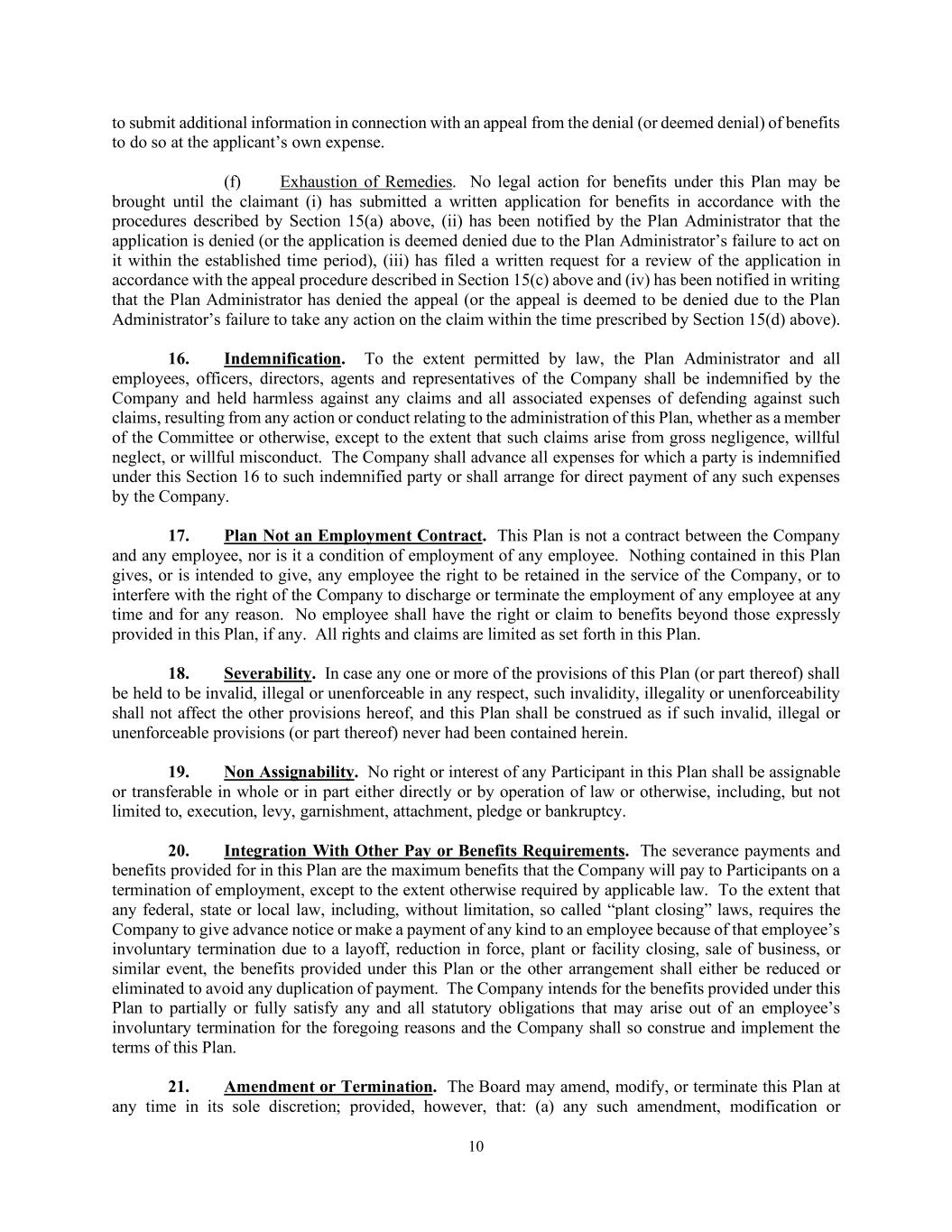 | | Form of Indemnification Agreement. | | | | Form 8-K (Exhibit 10.16) | | 6/15/2021 |